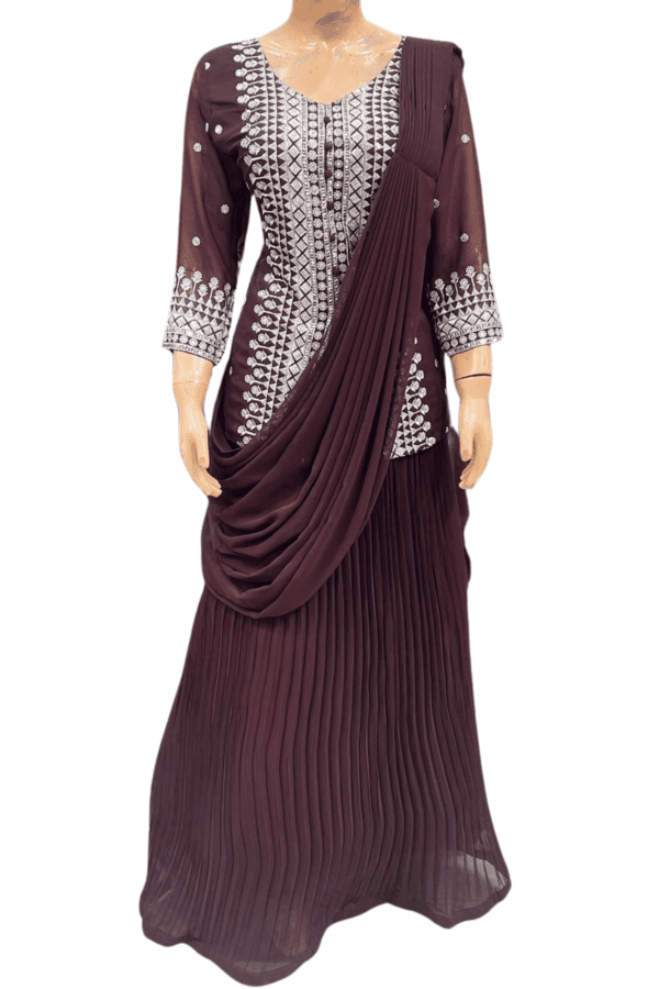 • Style: Drape Style Dress with Cord-Top and Flared Lehenga