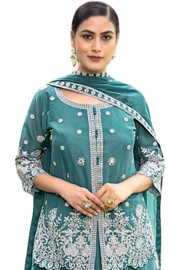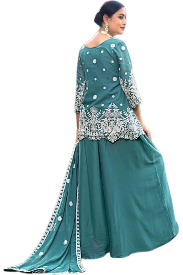- Material: Chiffon kurta with matching palazzo and dupatta