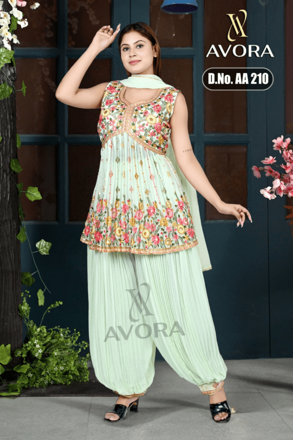 • Style: Kurta with Bordered Afghani Pants, Extra Sleeves, and Laced Dupatta.