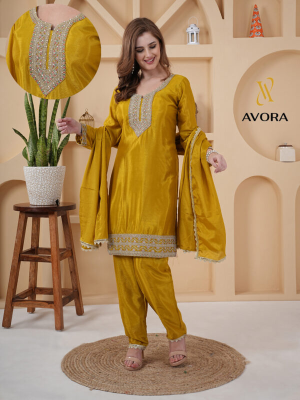 • Style: Embroidered Suit with V-shaped Neck and Extra Sleeves.