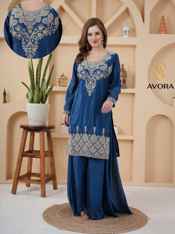 - Embroidered Suit, Extra Sleeves, Pleated Palazzo Pants