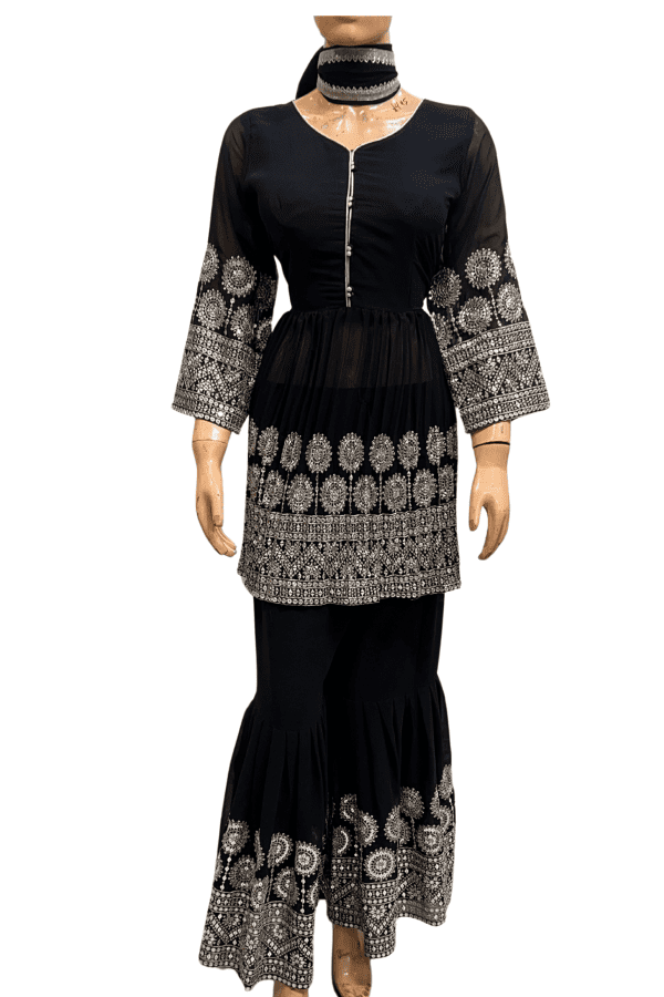 - Embroidered Suit, Full Sleeves, Pleated and Embroidery Palazzo Pants