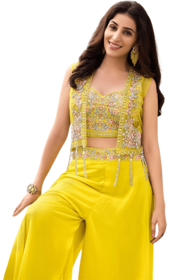 - Style: Embroidered Suit with V-shaped Neck and short jacket