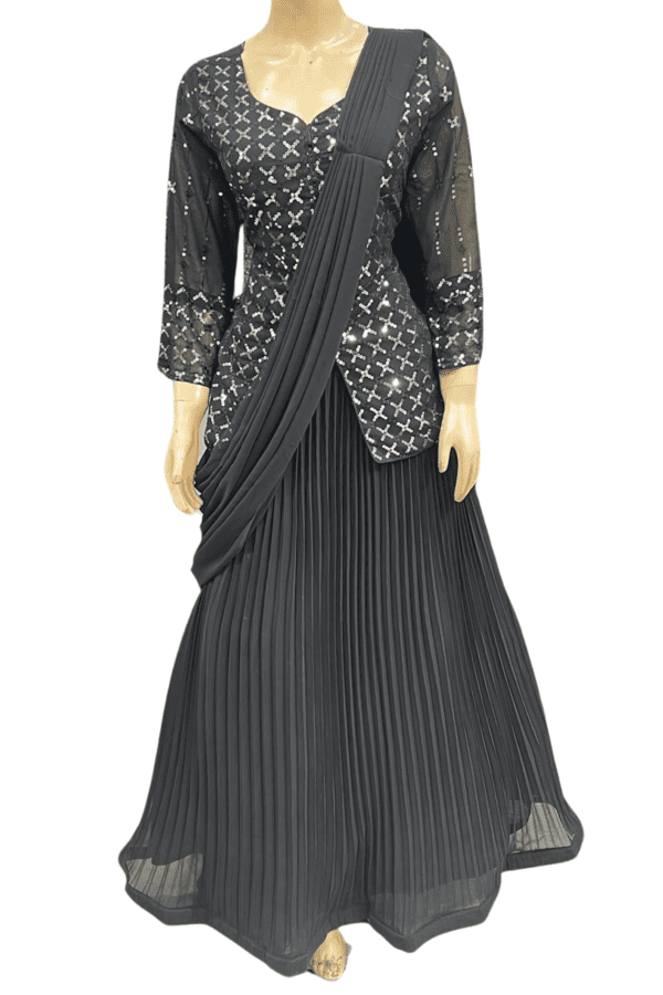 - Crop top, and Attached Draped Lehenga